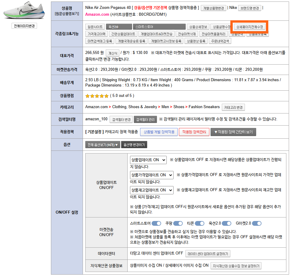 - 상품 상세페이지가 수정되면 상품을 업데이트하여도 상품 상세페이지는 수정되지 않습니다.