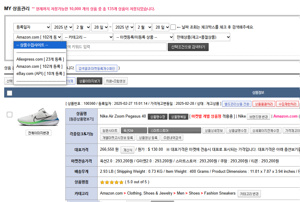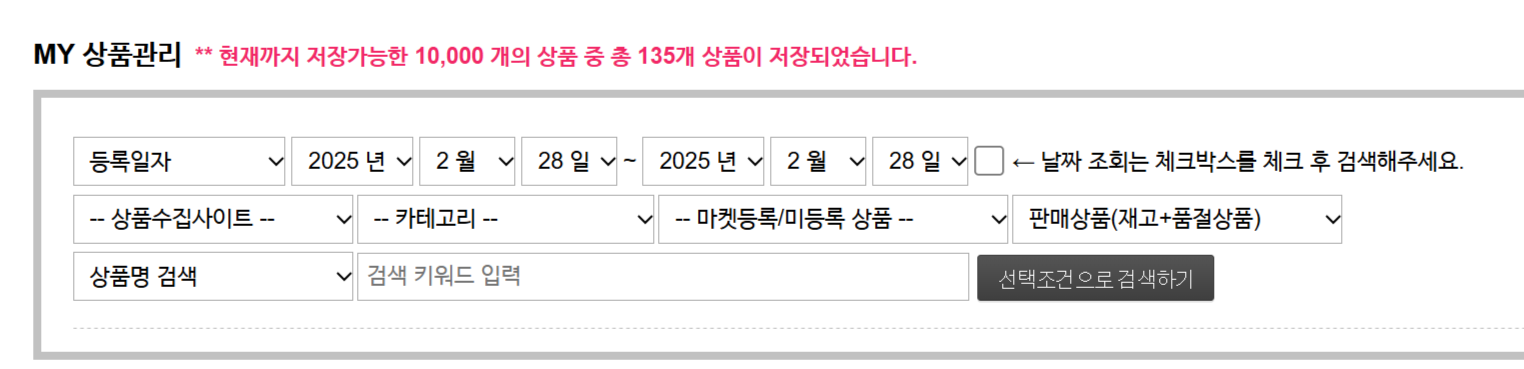 - 수집사이트상품번호 검색 : 원문사이트의 상품번호로 검색할 수 있습니다.