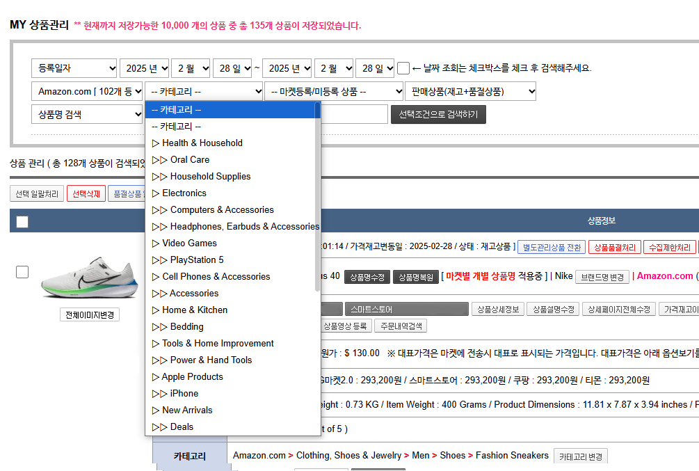 상품수집사이트 카테고리 검색