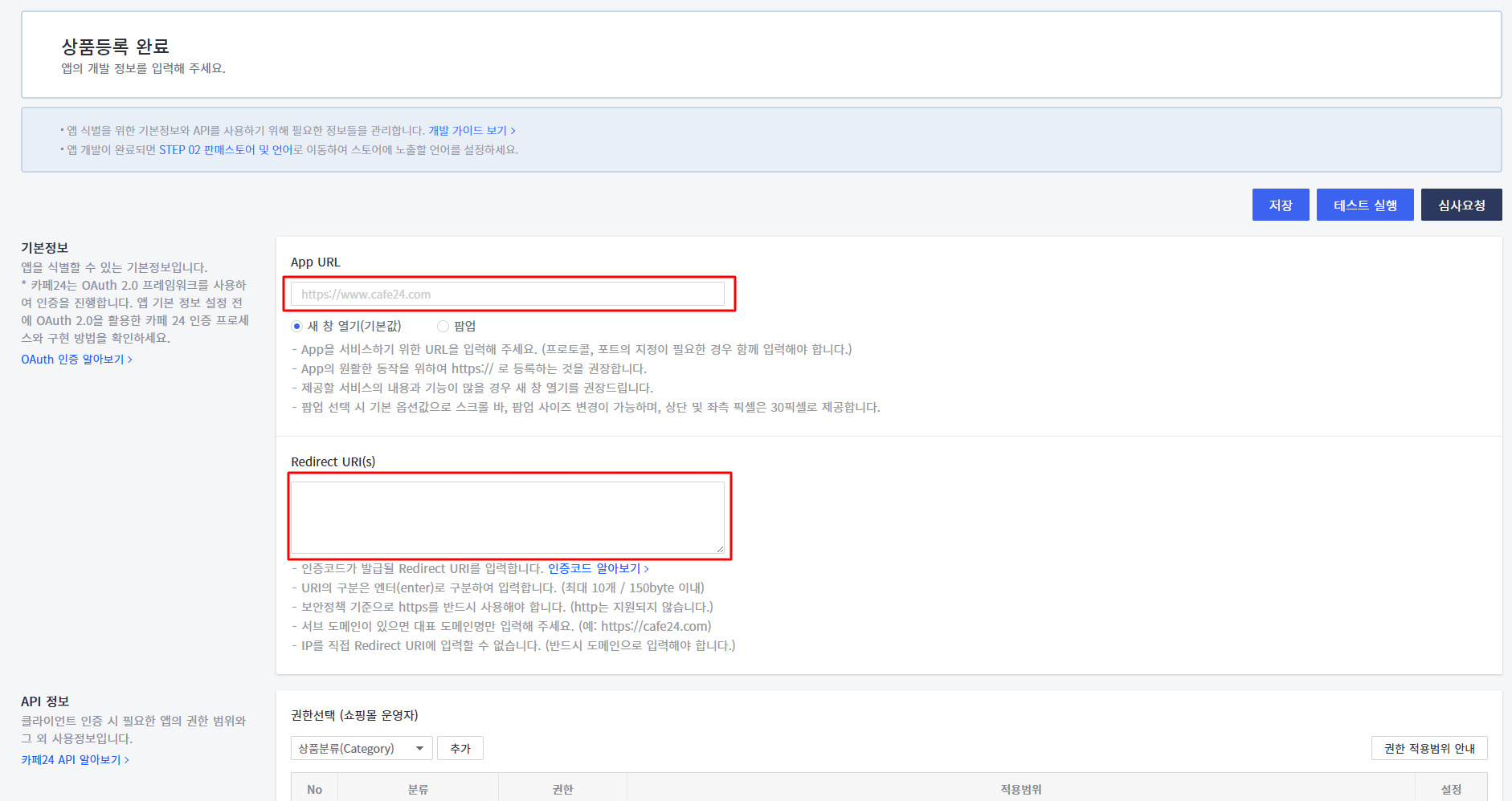카페24는 API 연동을 위한 App 을 등록해야 합니다.