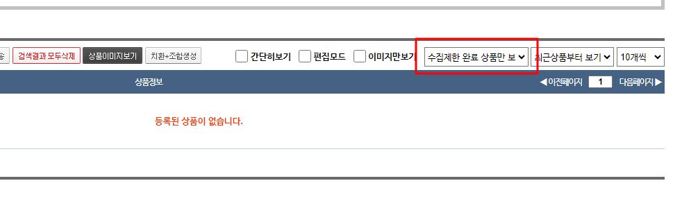 수집제한 상품만 별도로 조회할 수 있습니다.