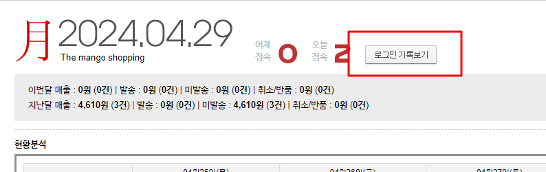 관리자 페이지의 로그인 기록을 확인할 수 있습니다.
