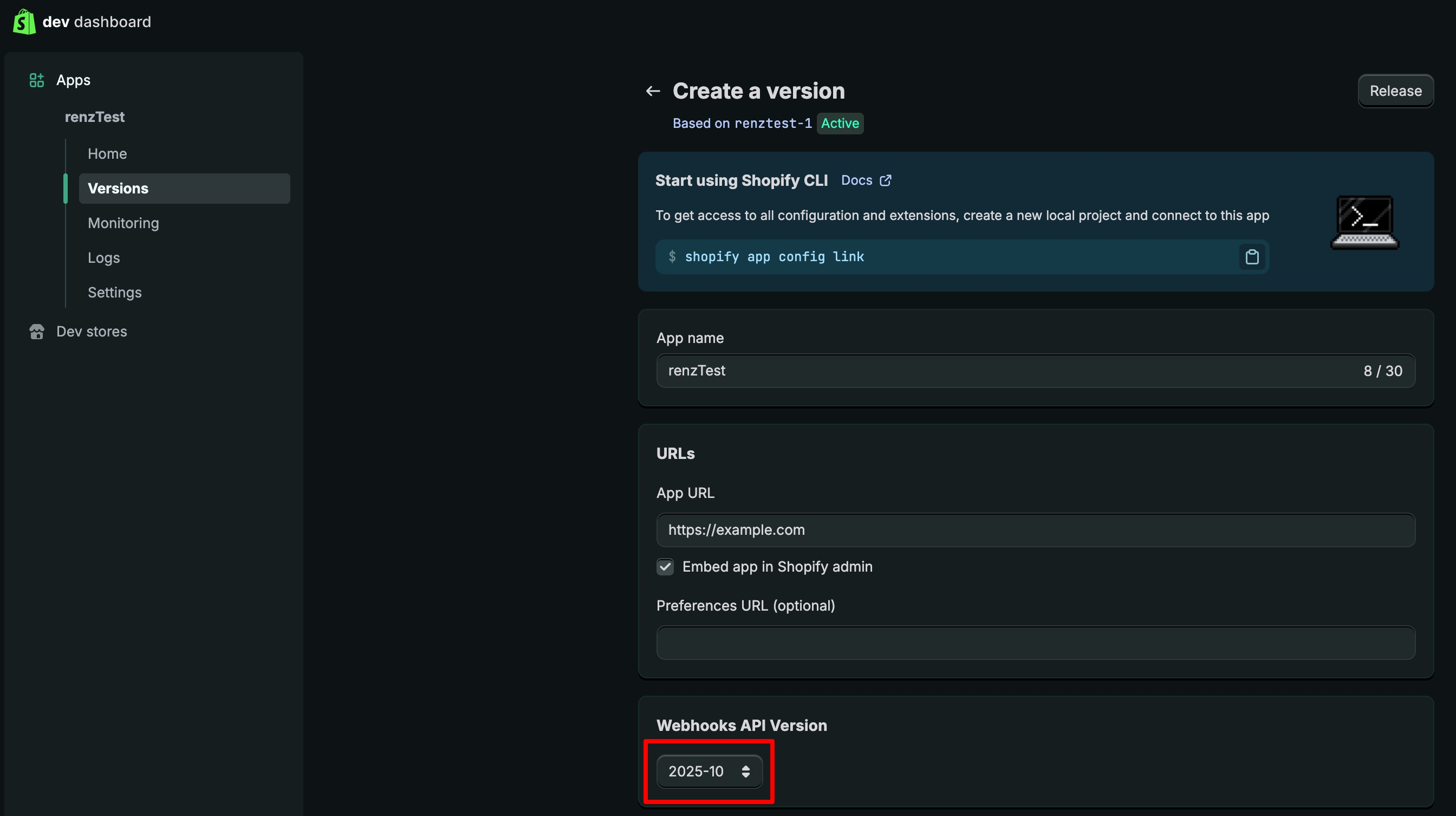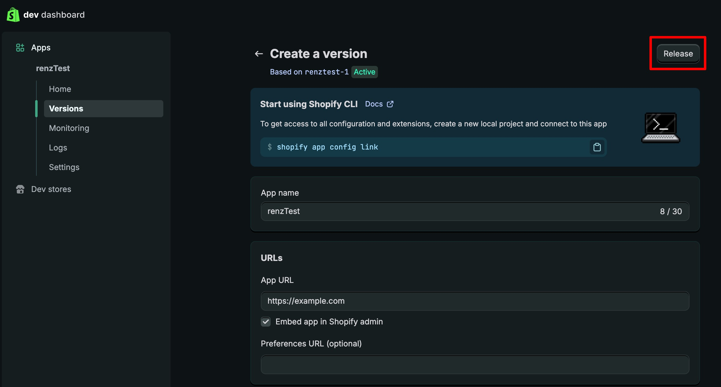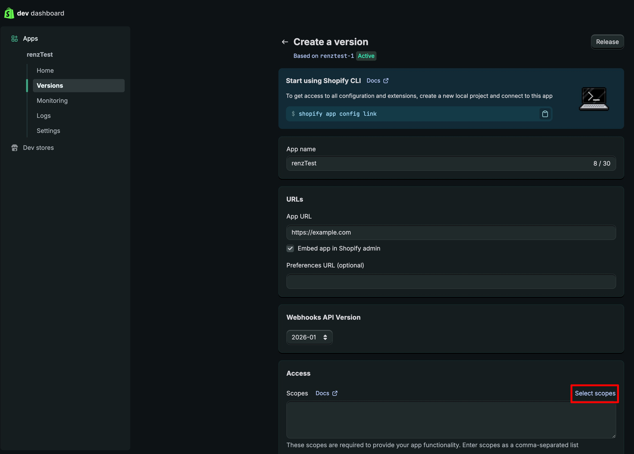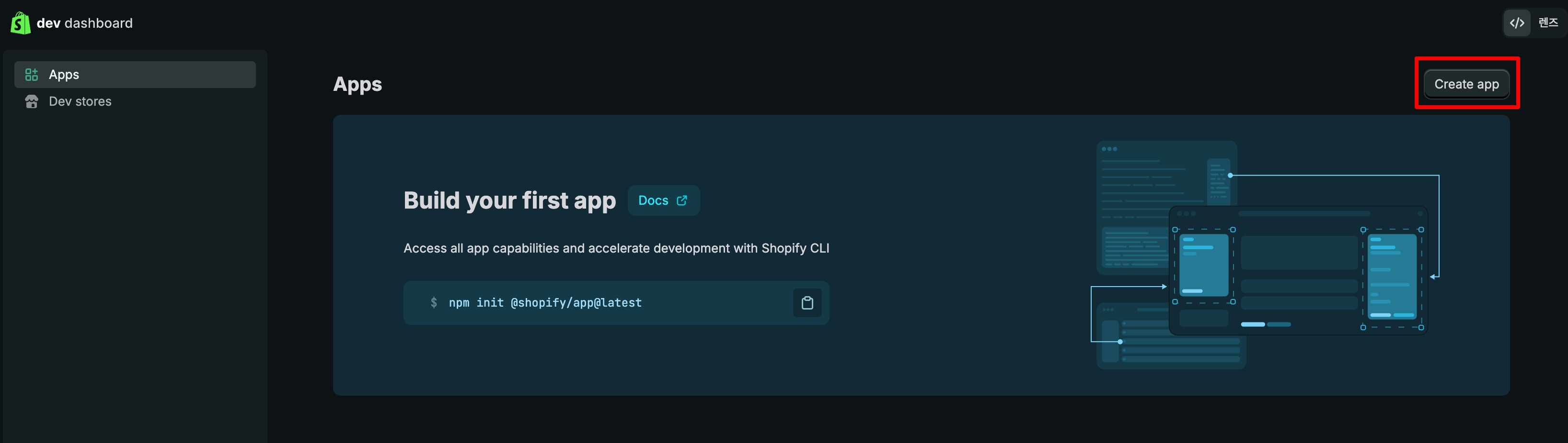 Dev Dashboard에서 앱 개발하기 버튼을 클릭해 주세요.