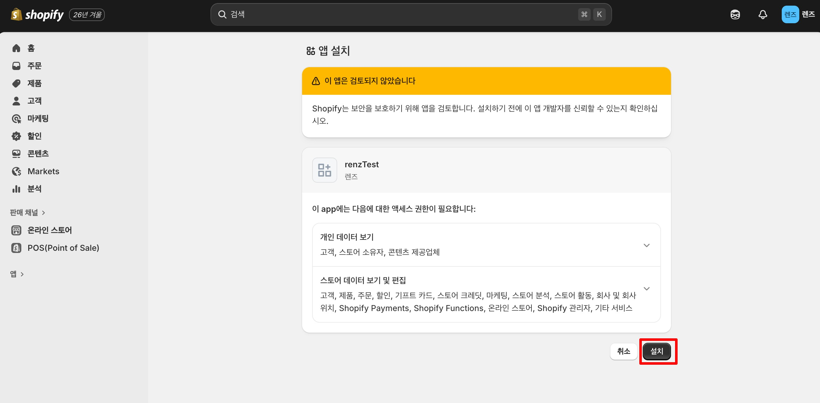 2. Shopify 관리자 접속